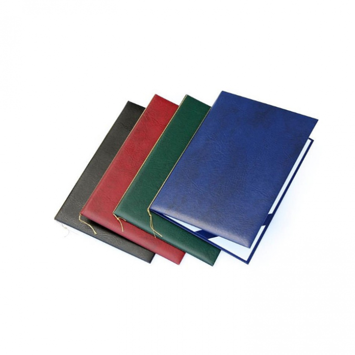 Aplankas sveikinimams, diplomams. Pagamintas iš kartono. Viršelis padengtas PVC plėvele, minkštas. A4 formato. Viduje yra juostelė dokumento prilaikymui. Vidinė pusė: balta. Viršelio spalva: mėlyna.