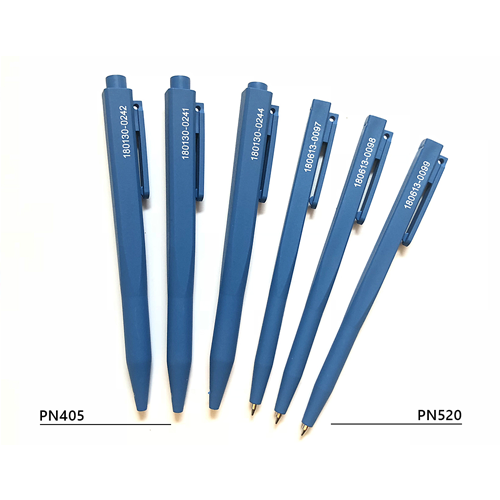 Pagaminta iš specialaus aptinkamo plastiko. Visos šio aptinkamo rašiklio dalys pagamintos iš metalo detektoriumi aptinkamų medžiagų.