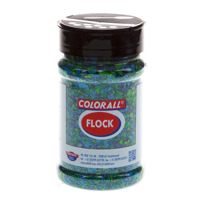 Colorall „FLOCK“ kūrybiniai įvairiaspalviai dažų dribsniai tinka naudoti aplikacijai ant beveik bet kokio paviršiaus ir sukuria natūralaus akmens įspūdį.
