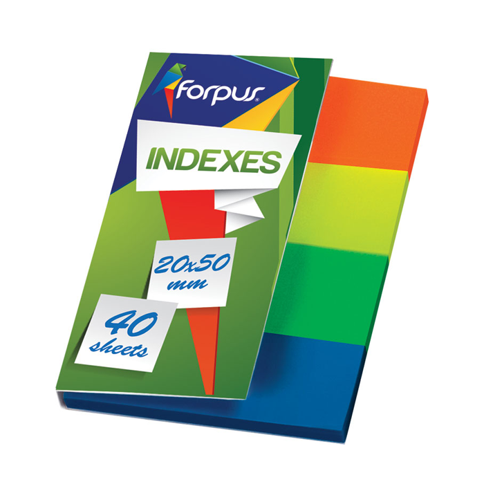 Indeksai žymekliai FORPUS, 20 x 50 mm, plastikiniai, 4 spalvos