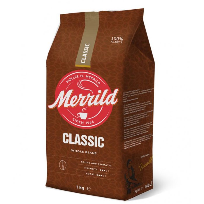 Kavos pupelės MERRILD – 100 % arabikos kava, pagaminta iš išskirtinių rūpestingai surinktų kavos pupelių, užaugintų geriausiuose kavos auginimo regionuose. Šios kavos skonis maloniai sodrus ir turtingas, o poskonis grynas. MERRILD – jei norisi tos pačios aukštos kokybės kavos kiekvieną dieną.