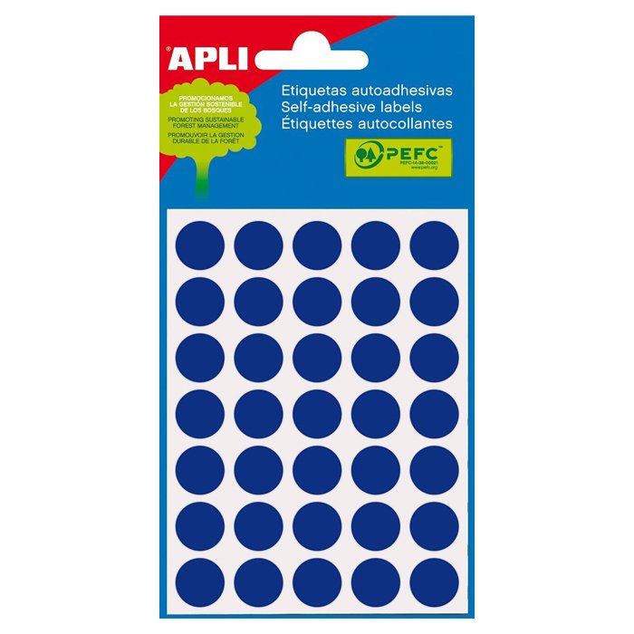 Lipnios etiketės APLI 2057, ⌀ 13 mm, 175 vnt., mėlyna sp.