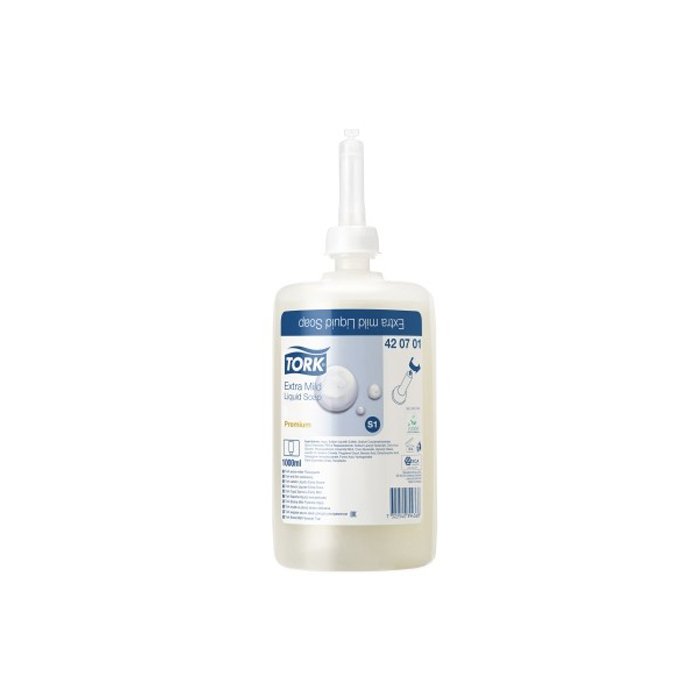 Skystas muilas Tork Premium Soap Extra Mild Non Perfumed S1, 1000 ml – tai ypač švelnus, bekvapis skystasis muilas, kuris švelniai plauna ir puoselėja jautrią rankų odą. Puikiai tinka žmonėms, kuriems reikia dažnai plauti rankas, pvz., medicinos darbuotojams, odontologams ir t.t. Sudėtyje nėra jokių kvapiklių ir dažiklių, todėl mažesnis alerginių reakcijų pavojus. Dermatologiškai patikrintas.