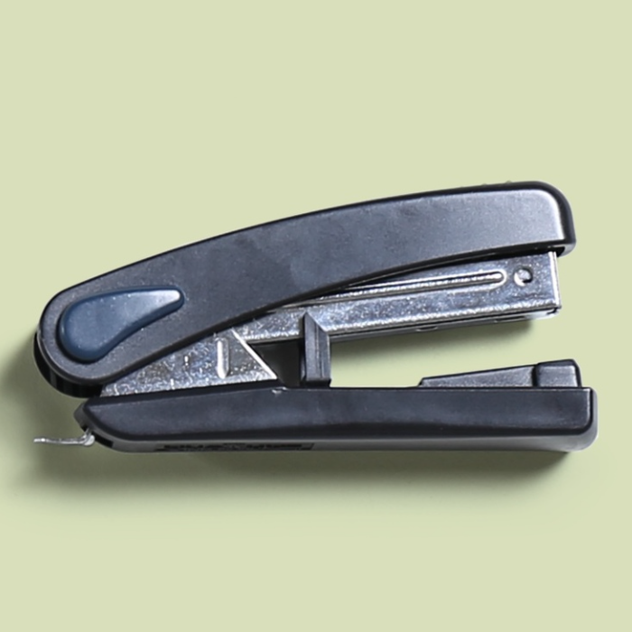 Sega iki 15 lapų. Naudojamos sąsagėlės Nr. 10. Plastikinis korpusas.