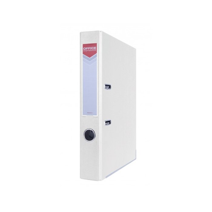 Segtuvas OFFICE PRODUCTS A4, dengtas plastiku (PP), su svertiniu mechanizmu, keičiama nugarėle. Nugarėlės plotis 50 mm. Susega iki 350 lapų. Metalu kaustyta apačia ir kampučiai. Spalva – balta.