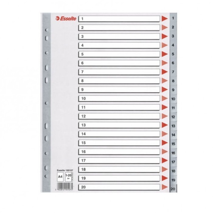 Skiriamieji lapai segtuvams ESSELTE, A4, 1-20, plastikiniai