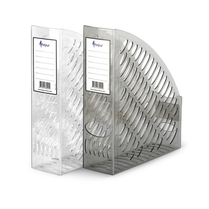 Vertikalus stovas A4 formato dokumentams. Pagamintas iš lengvo, standaus aukštos kokybės plastiko. Perforuotos sienelės. Kiaurymė pirštams. Matmenys: 240 x 300 x 70 mm. Spalva: skaidri.