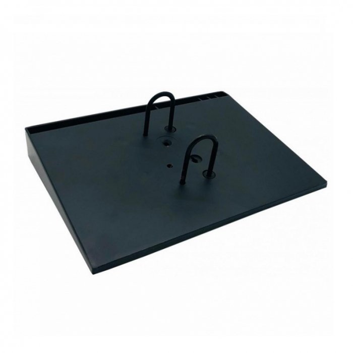 Tvirtas plastikinis stovas, skirtas staliniam kalendoriui. Patogu naudoti biure, mokykloje ar namuose. Yra vietos rašymo priemonėms, užrašų lapeliams įdėti. Spalva: juoda.