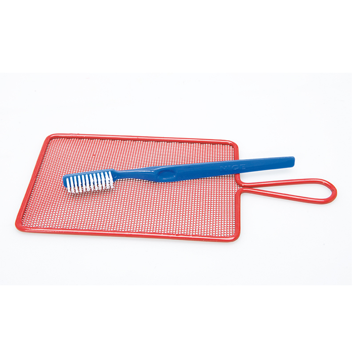 Tvirtas raudonos spalvos tinklelis, skirtas naudoti su šepetėliu. Įmerkite dantų šepetėlį į „AquaTint“ ir šepetėliu braukite per tinklelį pirmyn ir atgal. Tinklelio skylutės gražiai paskirstys „AquaTint“ purslus, sudarant unikalų dažų efektą.