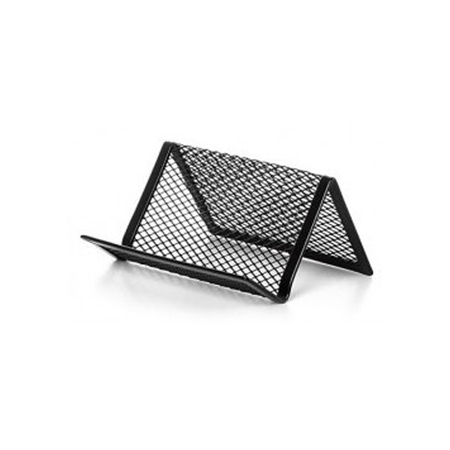 Vizitinių kortelių stovelis pagamintas iš perforuoto metalo. Juodos spalvos.